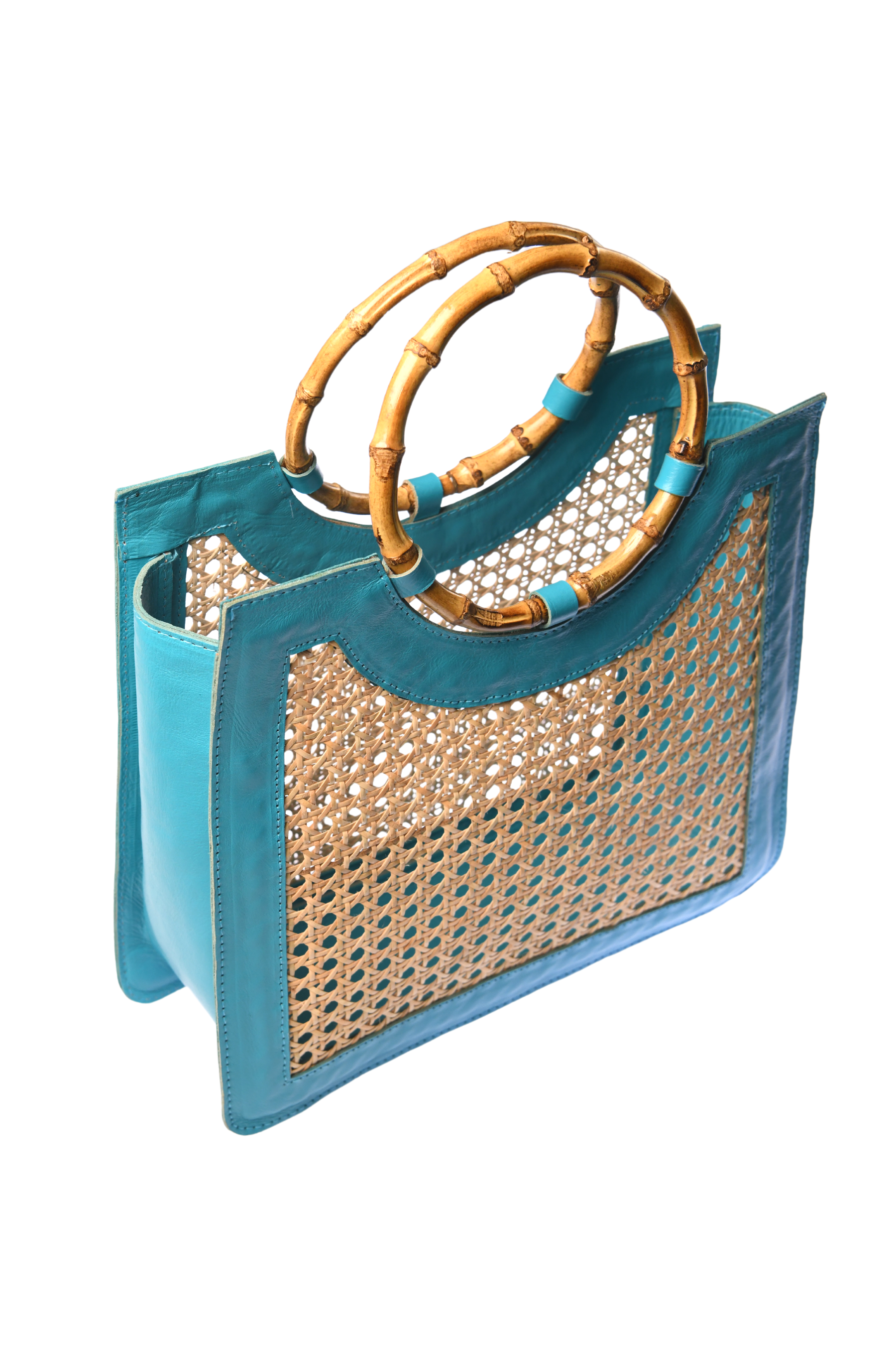 Bamboo Handle Wicker Bag / Turquoise