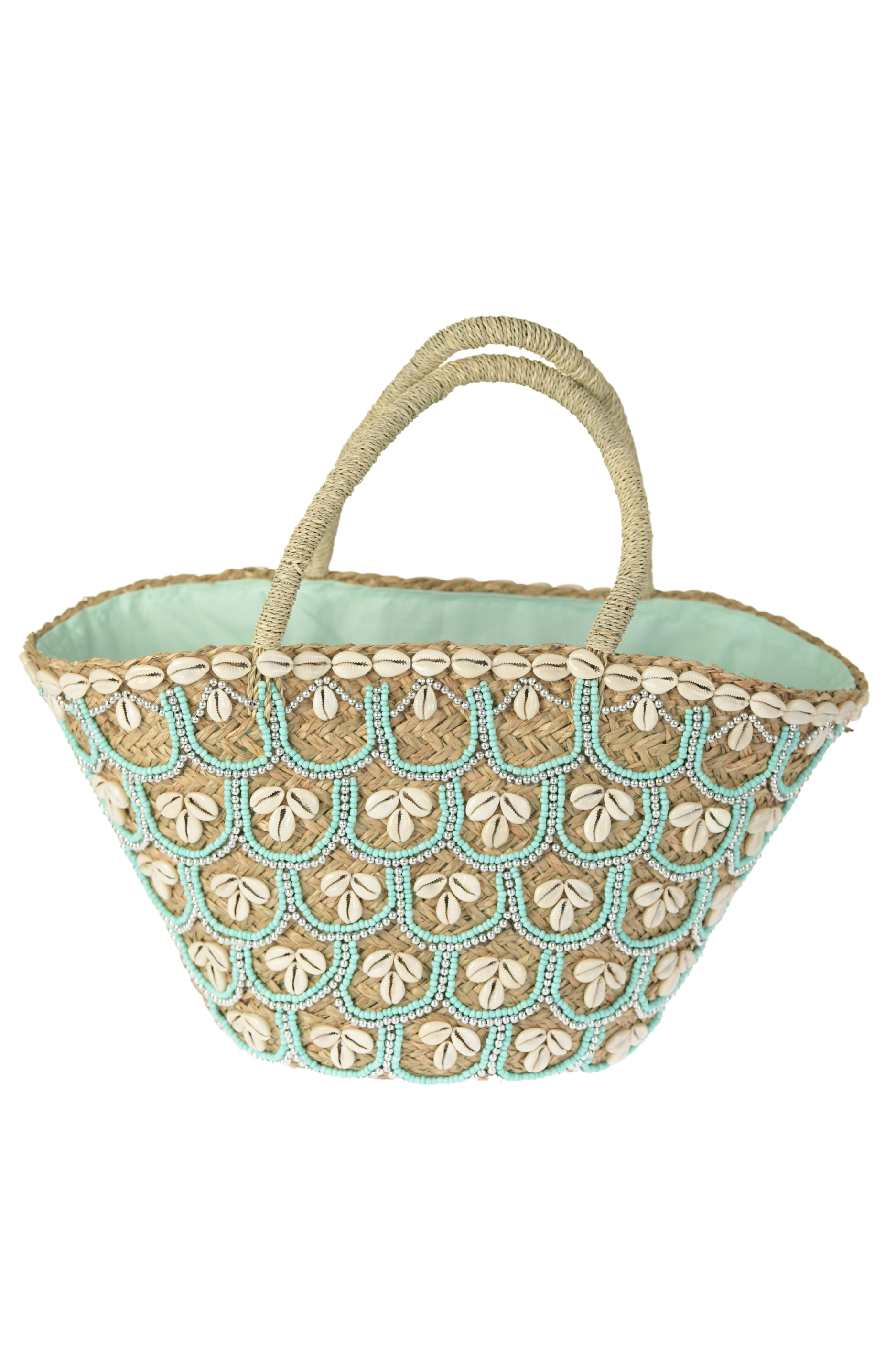 - Real shell details (on front side of bag, other side is plain straw material)