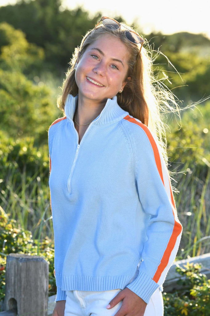 Striped Half Zip Sweater / Sky Blue Orange