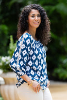Peasant Top / Navy Ikat